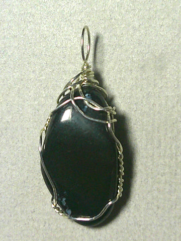 Comment: A non-typical black onyx. The rich metallic and black coloration is naturally caused by manganese oxides rather than the typical carbon in most black onyx stones. Once defined as a black and white banded agate, natural black onyx is currently defined the same as solid black jasper. A unique, handmade, genuine semi-precious stone pendant, this piece is posted individually, not merely a representative item - what you see is what you get.