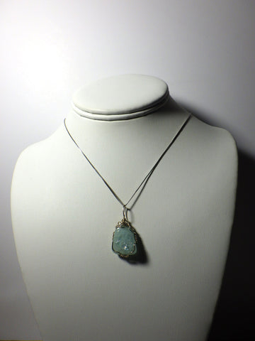 Aquamarine Pendant Wire Wrapped in .925 Sterling Silver Round Wire