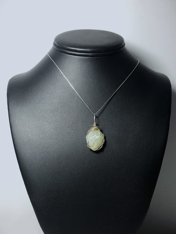Green Aquamarine Beryl Pendant Wire Wrapped .925 Sterling Silver