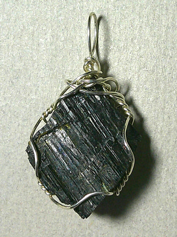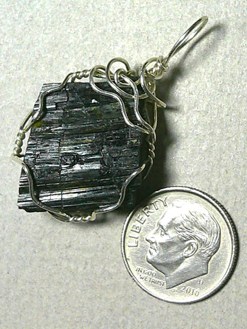 Black Tourmaline Crystal Pendant Wire Wrapped in .925 Sterling Silver Round Wire
