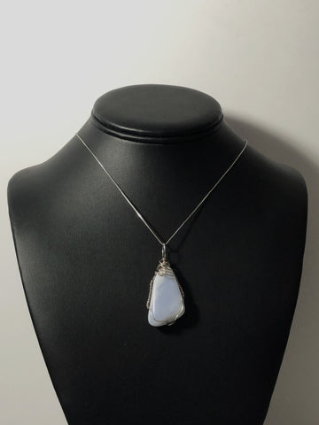 Blue Lace Agate Pendant Wire Wrapped .925 Sterling Silver