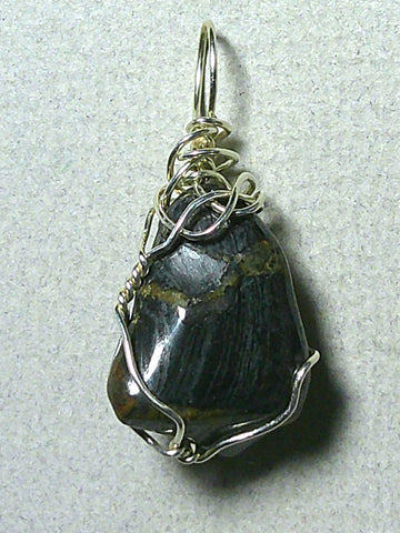 Magnetite Stone Pendant Wire Wrapped .925 Sterling Silver